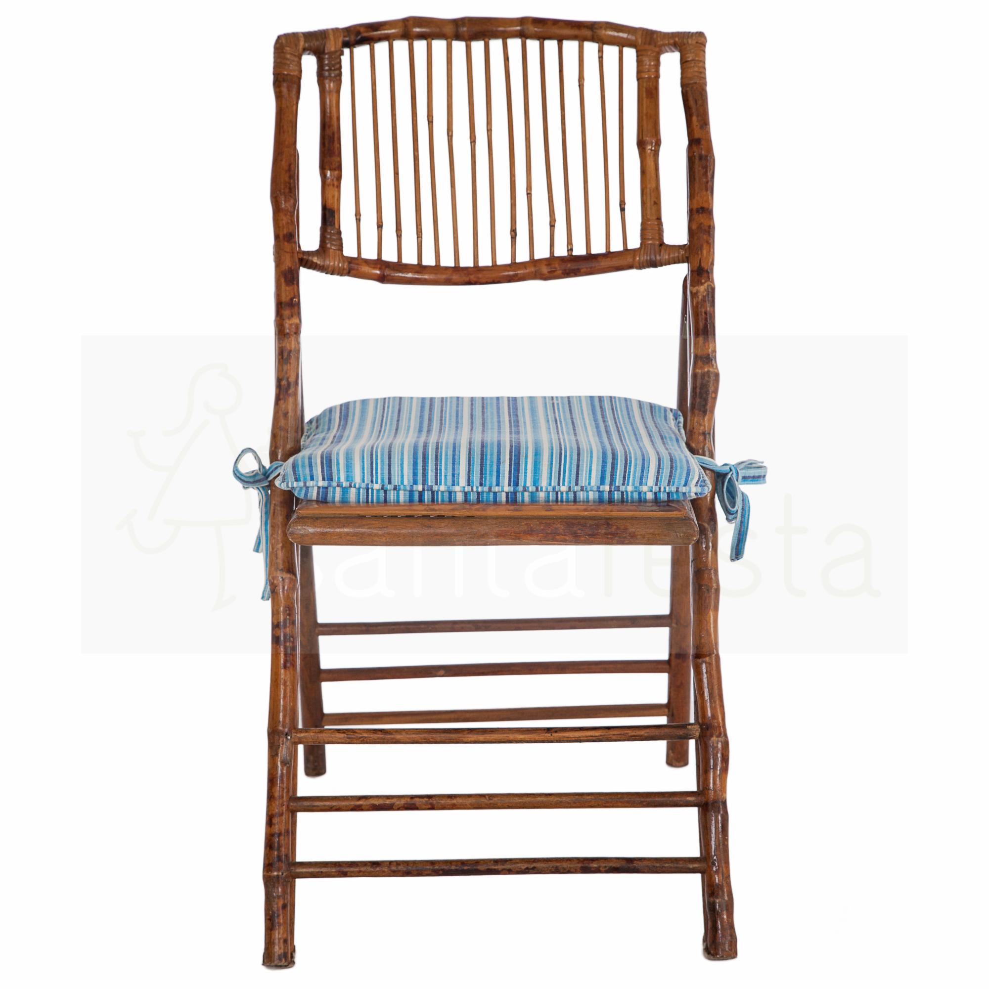 CADEIRA DOBRÁVEL BAMBOO C/ ASSENTO LISTINHA AZUL