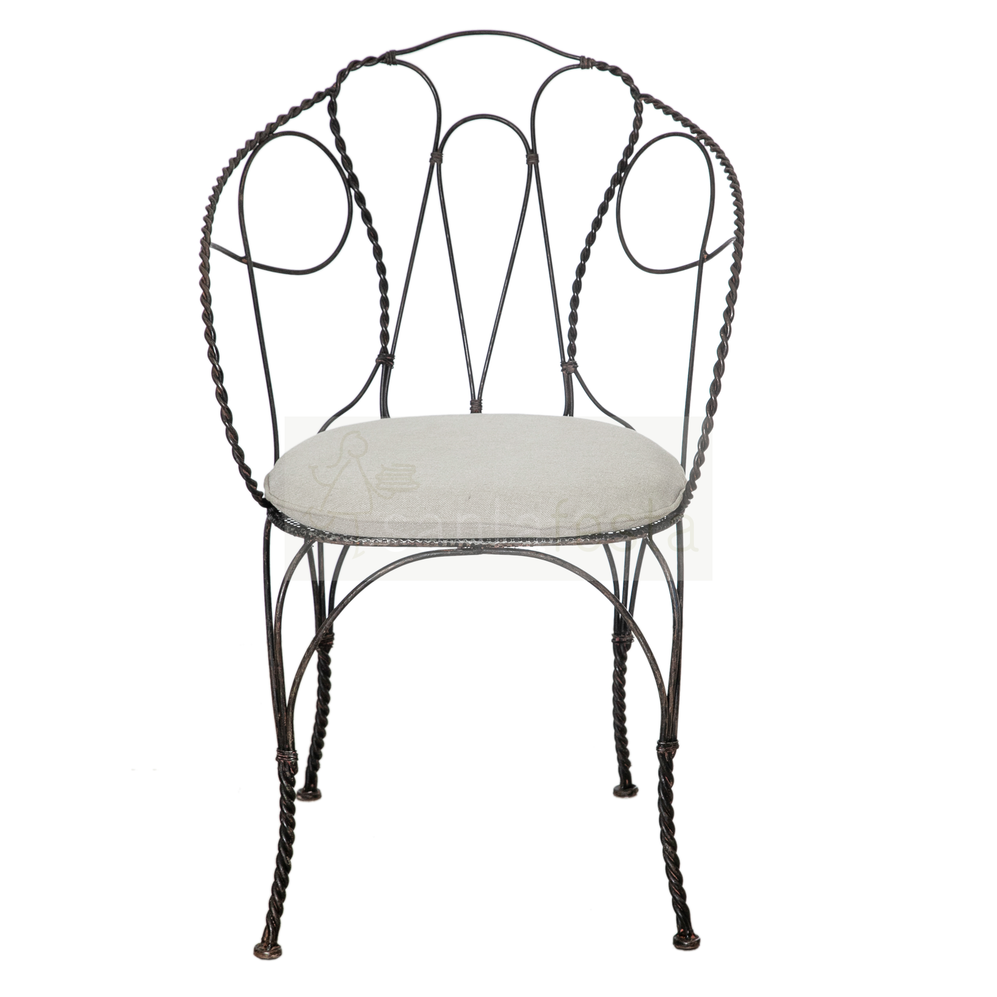 CADEIRA FERRO C/ BRAÇO PRETA ASSENTO LINHO